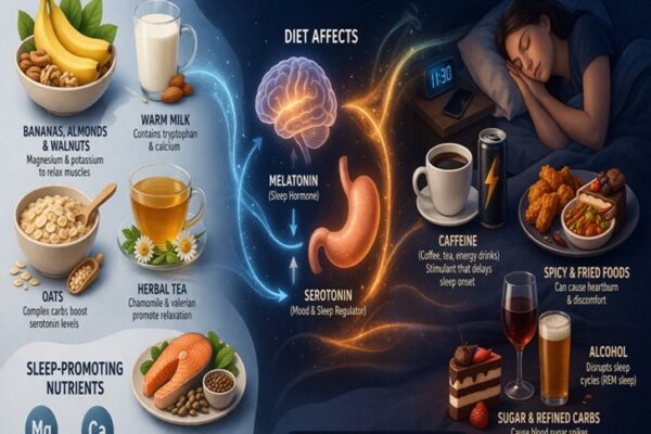 Written by Gurleen, Reviewed by Dr. Manvir Bhatia-01/04/2026 Sleep and diet are deeply interconnected. The food you consume not only fuels your body but also influences your sleep quality, duration, and overall restfulness. Poor dietary habits can lead to sleep disturbances, while a balanced diet can promote deep, restorative sleep. How Diet Affects Sleep Diet…