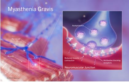 Myasthenia Gravis (MG) is autoimmune disorder where the body’s immune system attacks the receptors that help nerves communicate with muscles.