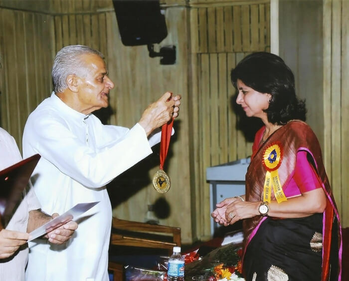 Dr. Manvir Bhatia getting the Indira Gandhi Mahila Rattan Award for outstanding achievement in the field of medicine.
